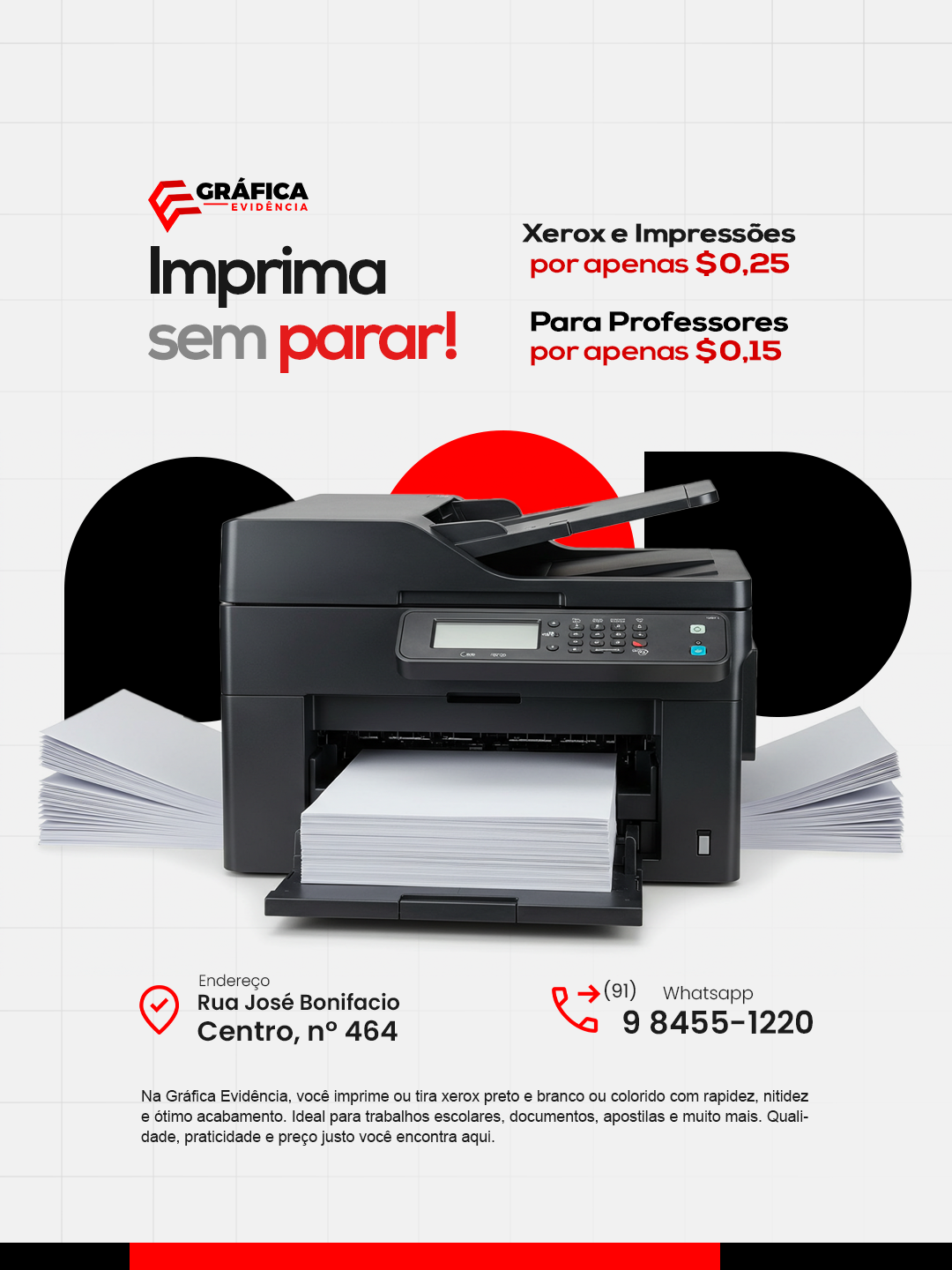 Trabalhamos com equipamentos de última geração, cores precisas e acabamentos profissionais, garantindo materiais que se destacam, do cartão de visita ao banner.